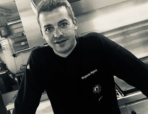 J’avais quelques amis qui étaient à l’époque en apprentissage en cuisine. J’ai un pote qui m’a filé un jour une feuille avec les restaurants dans les alentours de là où on habitait. J’ai été me présenter dans un restaurant qui était à 3 kilomètres de chez moi. J’y ai travaillé pendant plus de 4 ans et j’y allais en vélo. C’est arrivé un peu par hasard mon parcours dans la restauration. J’ai même commencé par la salle pour tout vous dire. Le premier rendez-vous que j’ai eu avec mon chef, il m’a demandé si je voulais faire de la salle ou de la cuisine, je lui ai dit que je ne savais pas. Il m’a dit que j’avais l’air à l’aise pour discuter alors je suis allé en salle. Mais la cuisine m’attirait plus et après un an d’insistance de ma part il a accepté de me laisser essayer en cuisine.