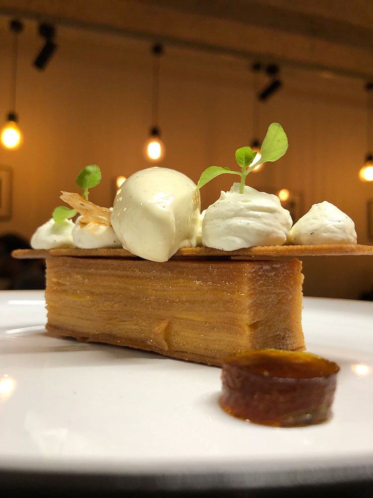 La carotte. J’adore ça. J’en ai fait des tonnes dans ma vie. C’est un légume simple et on peut tout faire avec. On en a fait un dessert : une chips de carotte avec une glace à l’huile d’olive et un moelleux à la carotte.