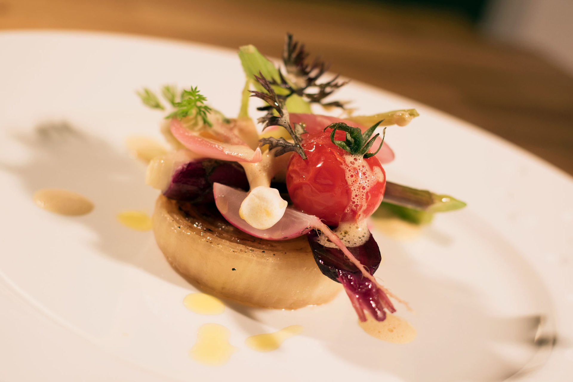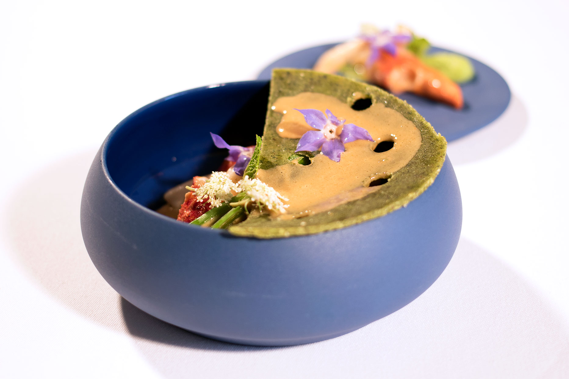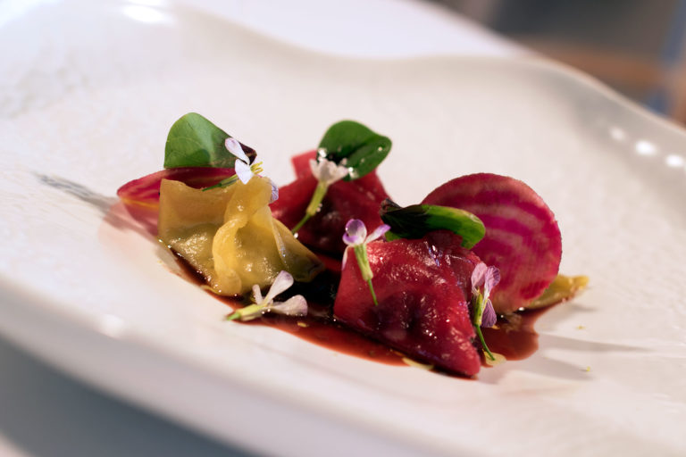 Au restaurant gastronomique on a fait un menu en 9 services qui n’est pas fixe. J’ai toujours des plats qui changent toutes les semaines. Ça me permet d’avoir un menu en constante évolution et en même temps de nous remettre en question et pousser un peu le produit mais aussi de respecter la saisonnalité.