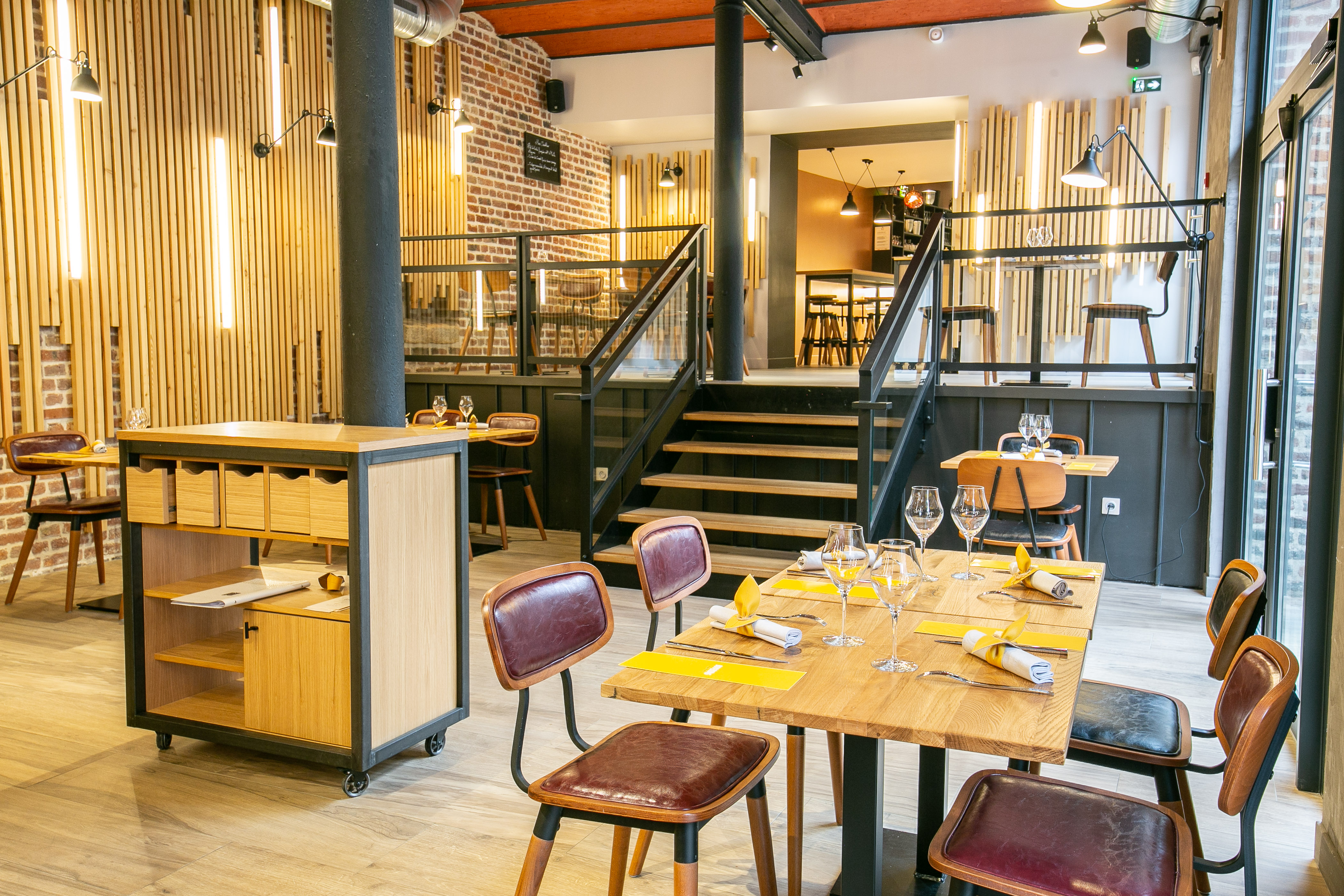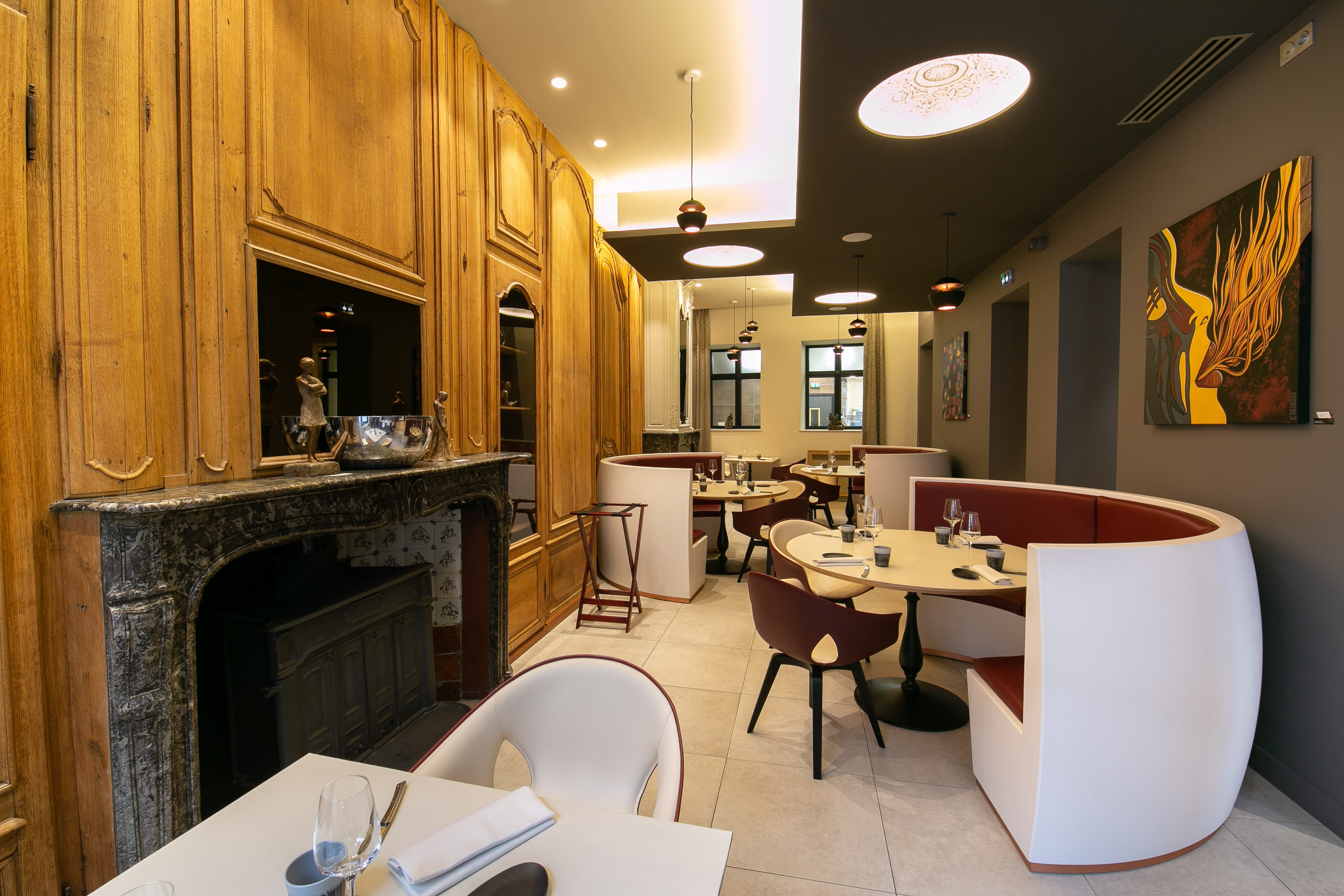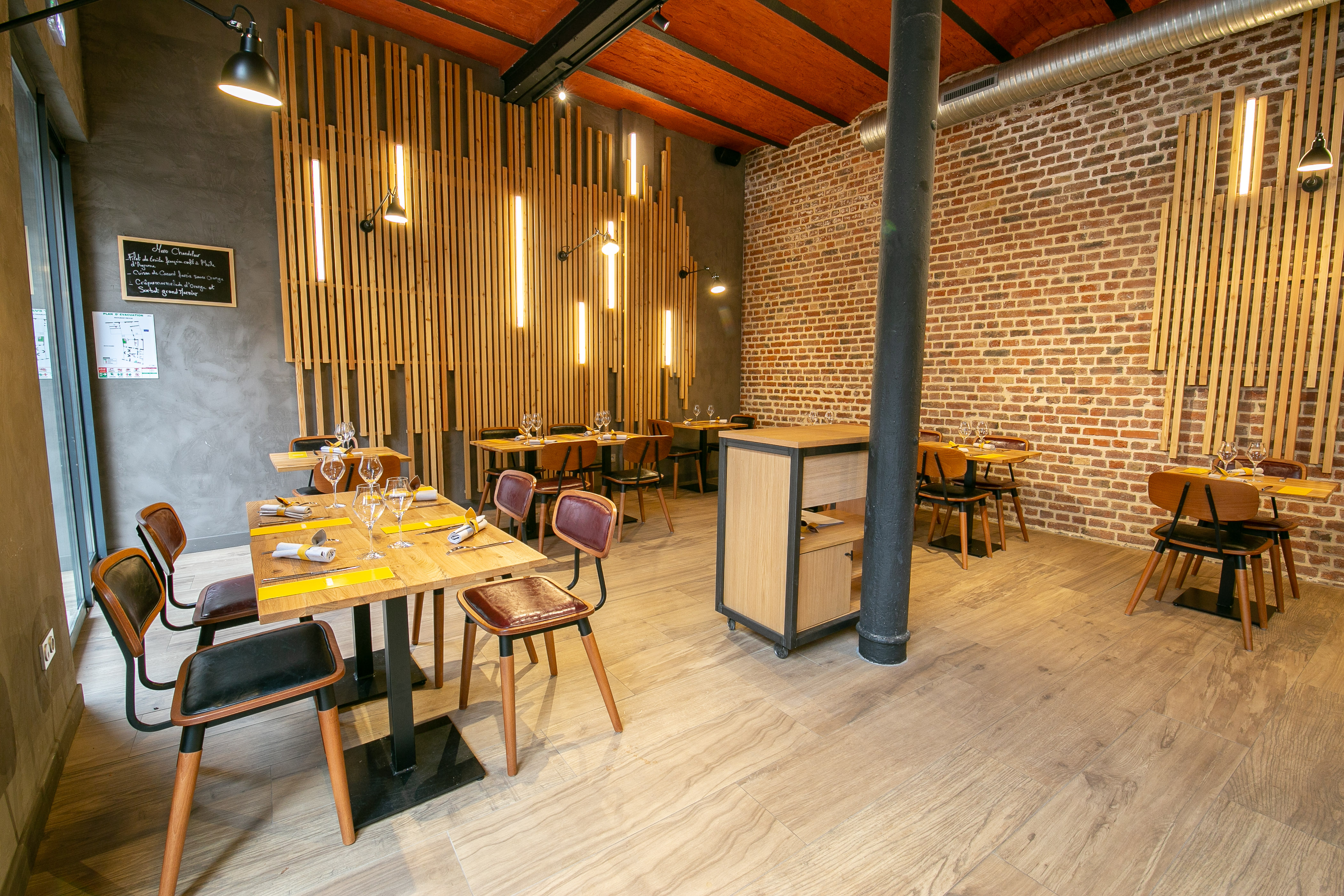 Étant de Douai je me suis un peu projeté vers ma ville natale et en même temps j’étais très bien accueilli car ils cherchaient un chef pour tenir un bon restaurant. On a visité ce bâtiment et on est tous tombé sous le charme. J’ai clairement exprimé qu’à moi tout seul c’était impossible de faire les travaux et de tenir un restaurant. Donc on a fait les travaux et on a remis le restaurant aux normes. J’ai eu en charge la partie décoration et mobilier.
