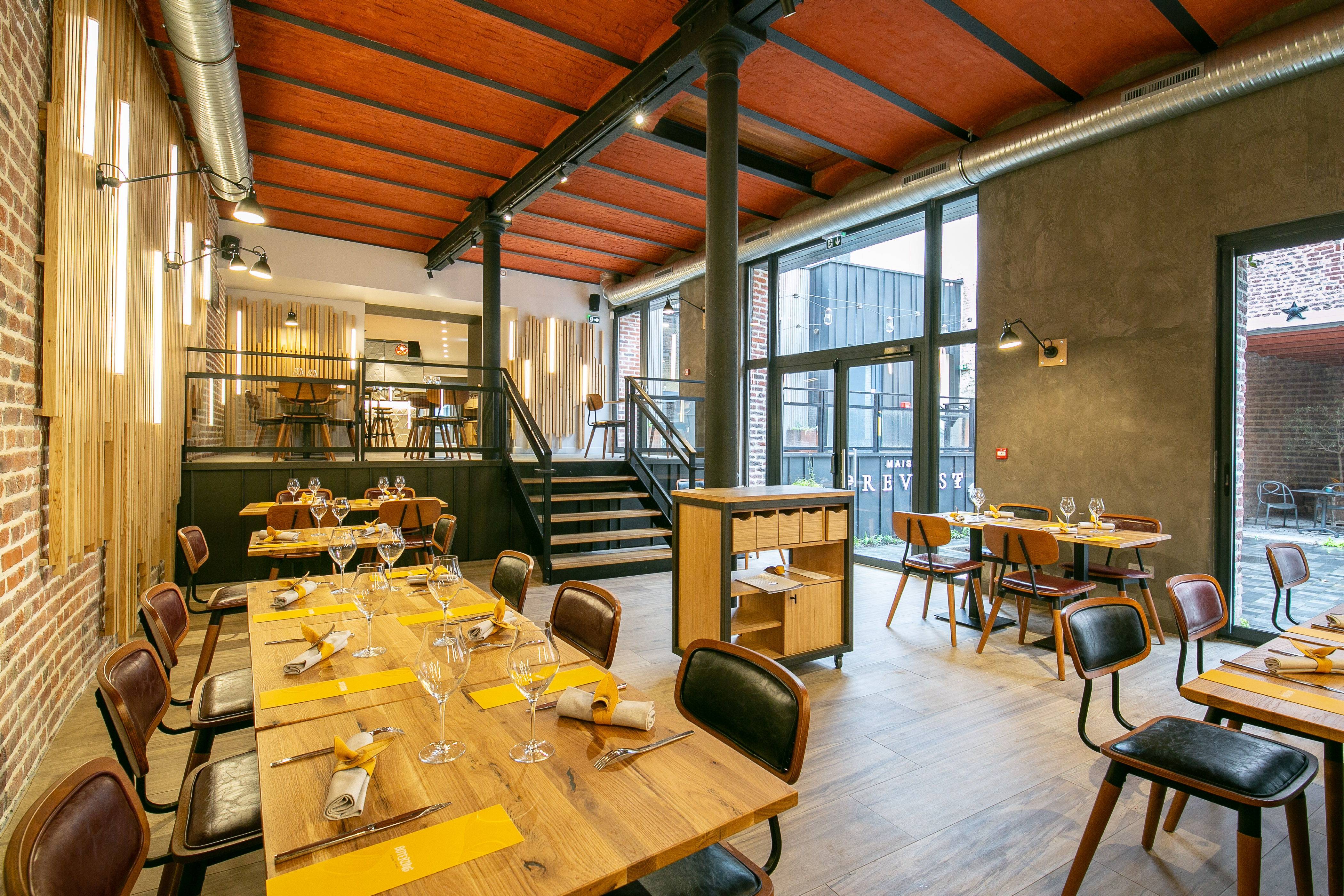 La Maison Prevost c’est l’immeuble. Quand vous venez manger, vous venez à la Maison Prevost. On a voulu que les deux restaurants, le gastronomique et le bistronomique, aient un seul accueil. Que l’on mange pour 80€ ou 30€ il n’y a pas de différence. C’est pour ça qu’on l’a appelée la Maison Prevost. Comme il y avait deux restaurants à l’intérieur on n’allait pas les appeler Maison Prevost 1, Maison Prevost 2. Donc on leur a trouvé deux noms encrés dans le paysage Douaisien. Notamment avec le restaurant gastronomique La table des Échevins, les échevins qui étaient les notables de l’époque et qui étaient en chaque de gérer Douai. Ça nous a paru encré dans le décor et dans l’histoire.