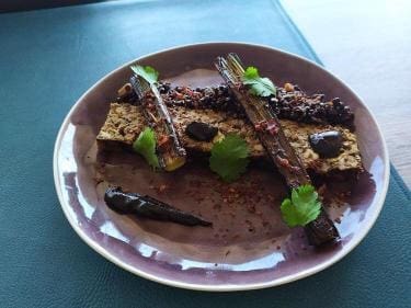 - Ensuite le retirer du feu le tailler en deux dans le sens de la longueur puis faire griller côté cœur le poireaux