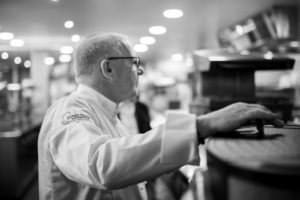 Aujourd’hui on a tout pour travailler correctement dans la restauration. C’est moderne ! Mon équipe a tout pour se sentir bien sur son lieu de travail. Un bel équipement, du bon matériel, une pièce pour eux. « Cela n’est pas la Bérézina ! » Ils sont comme chez eux. C’est important pour moi, qu’ils se sentent bien. La preuve, j’ai mon Chef, Philippe Géniteau qui m’accompagne depuis 30 ans.
