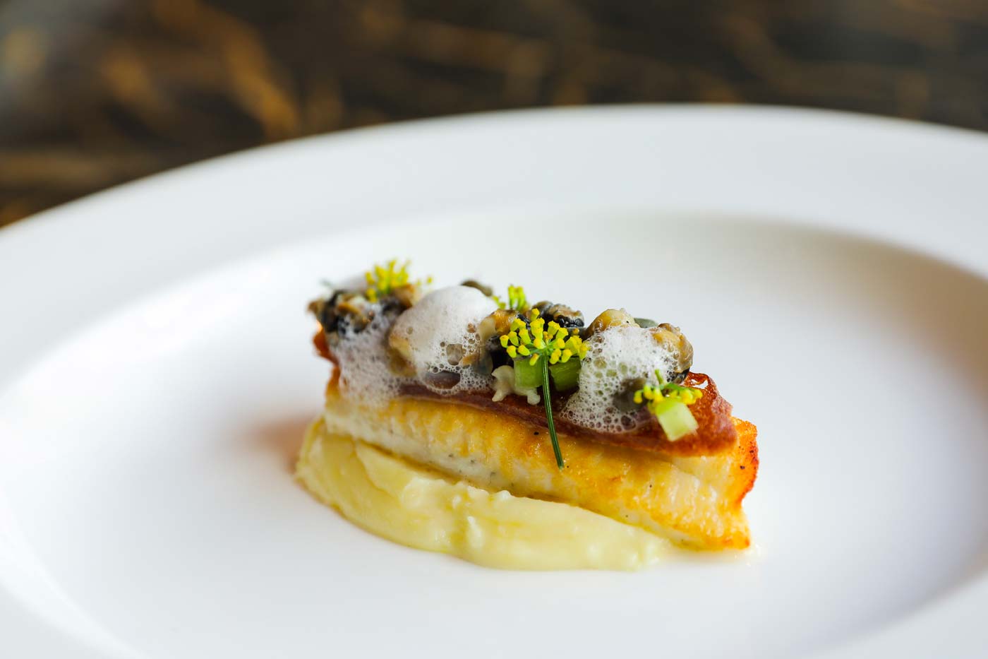 Française et gourmande. C’est une cuisine que tout le monde comprend mais que personne ne peut réaliser à la maison. C’est à dire que vous allez avoir un beau morceau de poisson avec une garniture qui sera adaptée et une sauce faite en fonction. Je ne suis pas un chef qui déstructure les produits et qui a 22 déclinaisons sur l’assiette.