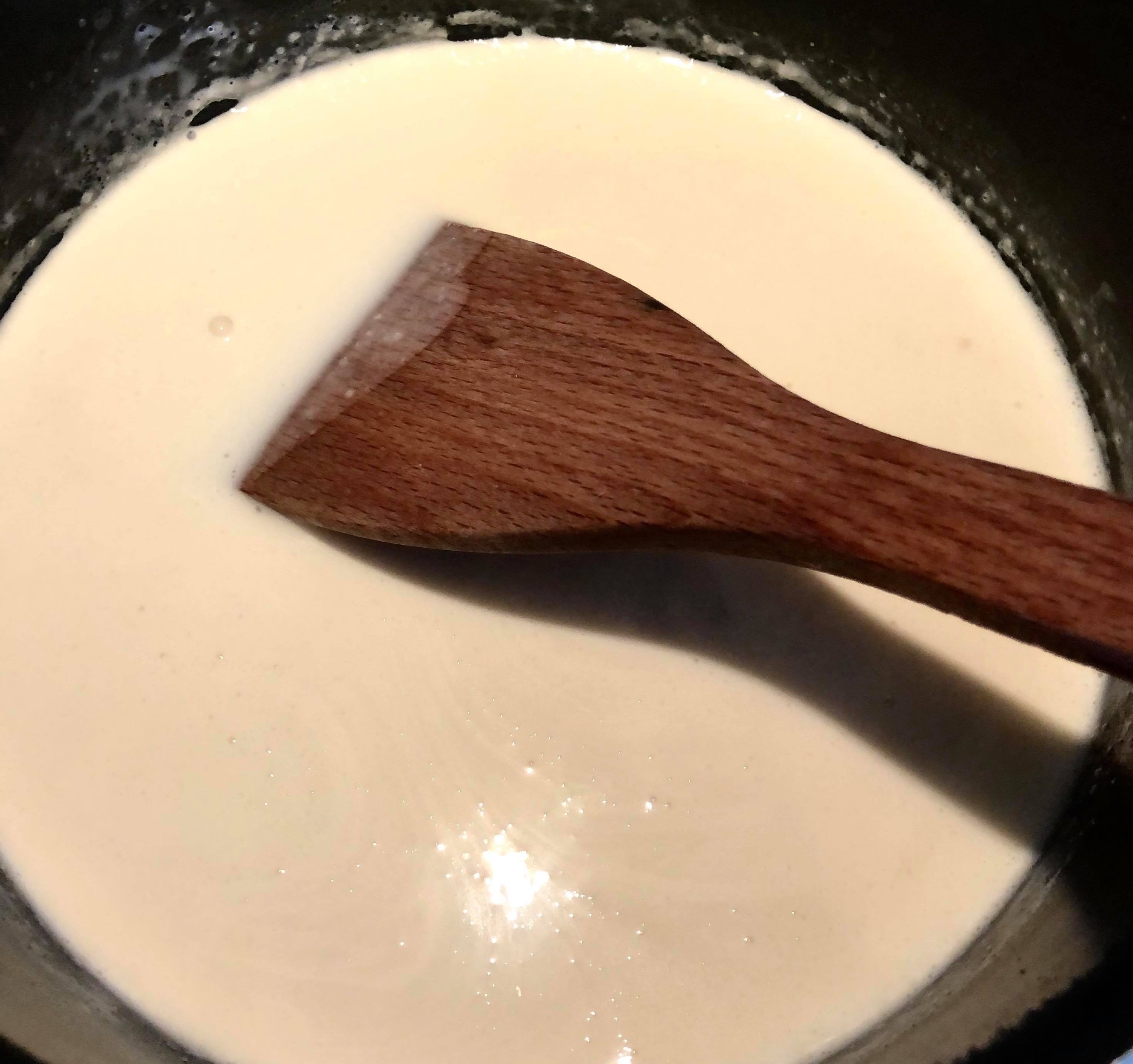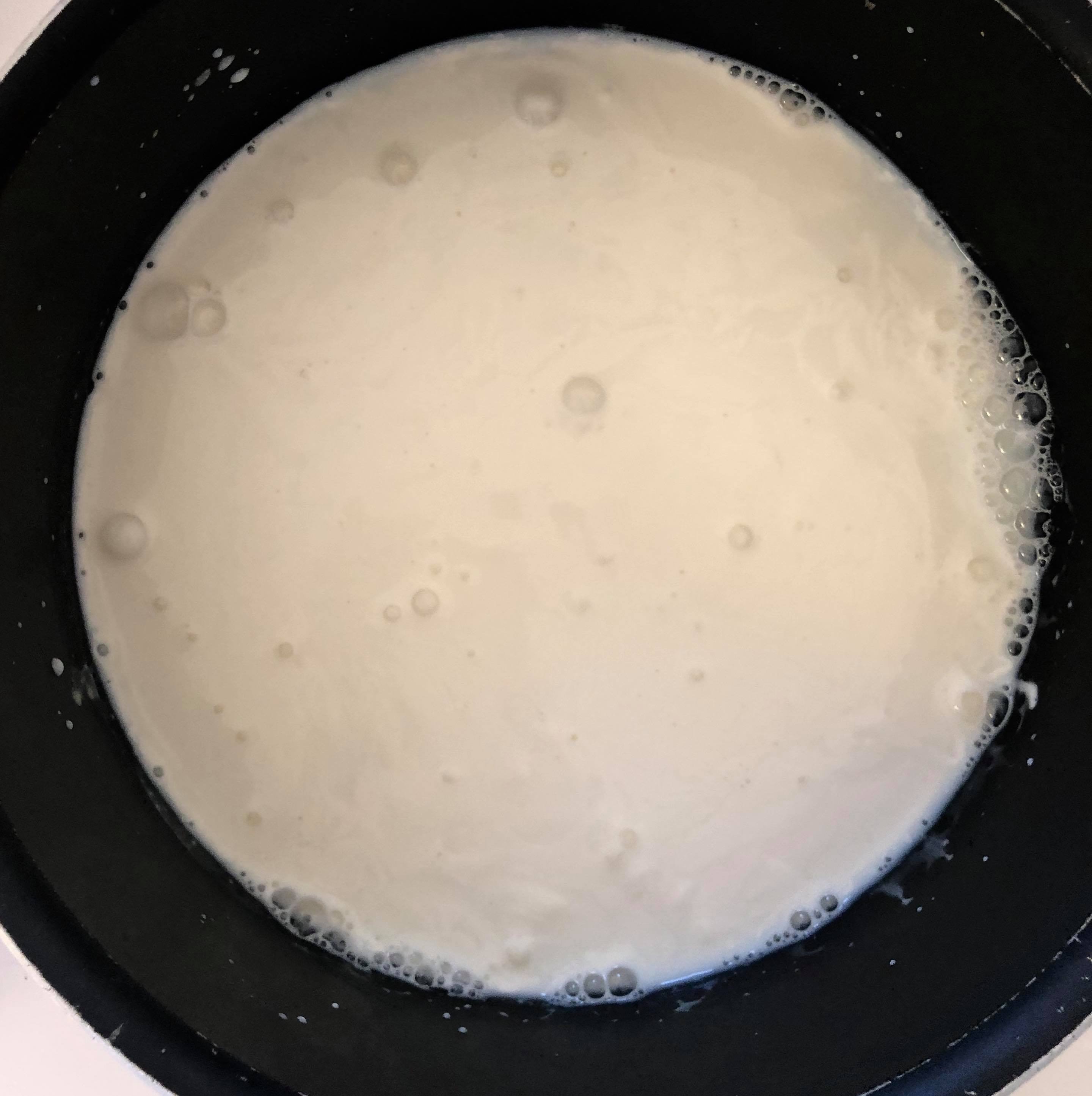 1) Chauffer le lait, la crème et la vanille jusqu’à ébullition et laisser infuser 15 minutes