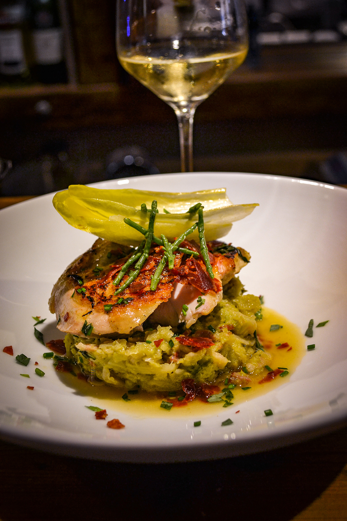 Oui la pomme de terre, les poireaux, endives… Je n’essaye pas forcément de faire une cuisine du nord parce que c’est stigmatisé au Welsch et à la carbonnade. Mais je travaille beaucoup les poissons du Nord.