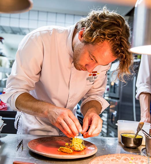Il a continué à me suivre lorsque j’ai gagné le premier prix de la Bourse de la Création Badoit en 2014. Une Bourse qui soutient les jeunes talents de la restauration. Cela m’a permis d’ouvrir le Rouge Barre en juin 2014 et de m’apporter de l’aide pour devenir, en plus d’un chef en cuisine, un véritable chef d’entreprise, qui gère les fourneaux, mais aussi un business à part entière.