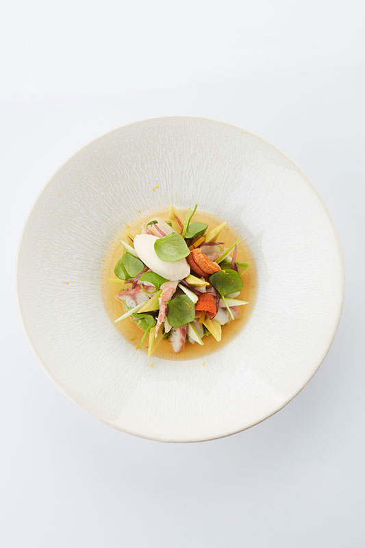Je travaille un produit, une sauce et une texture, et je me pose toujours la question, si je rajoute un ingrédient « que va-t-il apporter ? » S’il n’apporte rien, je ne le mets pas. C’est ma philosophie.