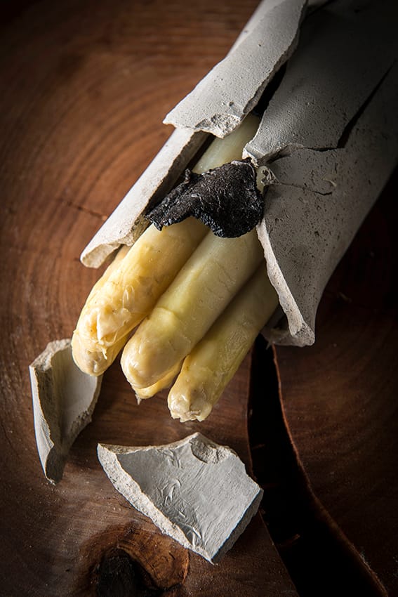 J’ai toujours une viande au menu de toute façon. J’en mets toujours une pour le vin rouge, ça permet au sommelier de travailler avec ça. Mais la viande change tout le temps en fonction des saisons. On a eu du gibier récemment, là on travaille du pigeon. Pratiquement sans cuisson. La viande est marinée pendant une bonne semaine dans la crème. On refait une croûte après. Je n’ai jamais vu un pigeon aussi fondant. Il se coupe dès le moment où le couteau est posé dessus.